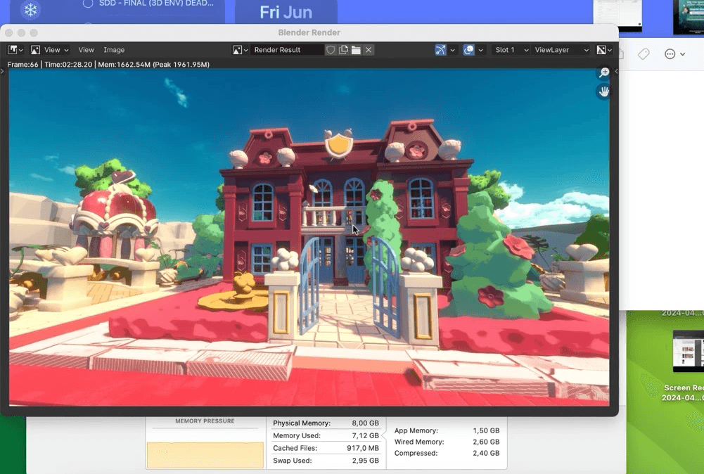 Hollyberry is a 3D environment, inspired by the Hollyberry Castle from Cookie Run: Kingdom. The assignment required a technically polished design from every angle, prompting me to reimagine the game’s 2D visuals in a fully 3D perspective. By maintaining the original proportions and art style, I used stylized materials to preserve the castle’s charm, seamlessly translating its iconic design into a new dimensional experience.